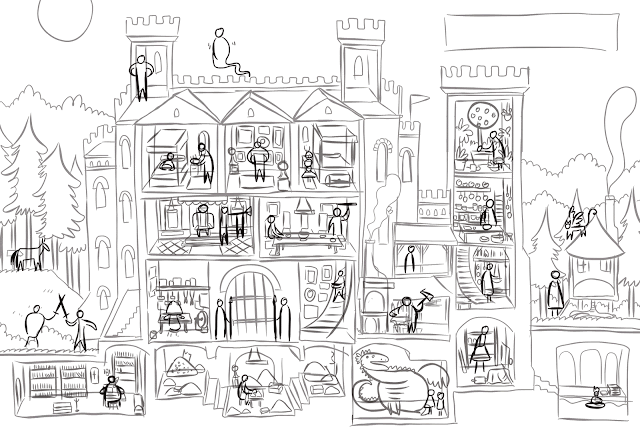 12 rozkładówek pokazujących jak, każdego miesiąca, płynie czas mieszkańcom pewnego zamku - uważni obserwatorzy zauważą w książce smoka, który przywędrował z innej mojej książki
